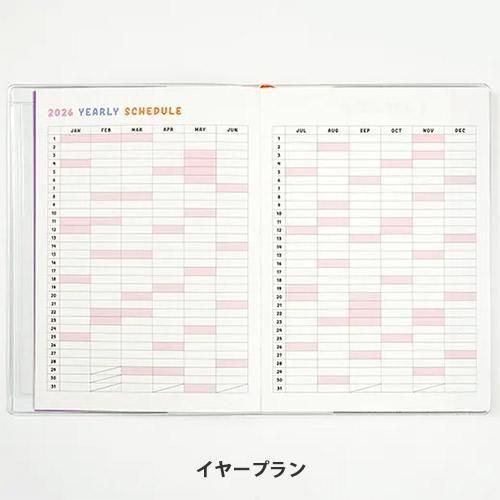 【その他】◎ウィークリー:見開き1週間(左→イラスト、右→スケジュール+方眼メモ) 2025.12.22~2027.1.3 ◎マンスリー:見開き1ヶ月(ブロックタイプ) 2026.1~2026.12 ◎イヤープラン:見開き1年 ◎カレンダー:見開き2年 ◎全144ページ(フルカラー) ◎しおり1本付(サテンリボン)◎表紙:オーロラ箔使用ソフトカバー ◎ペンホルダー付き ◎ポケット付き