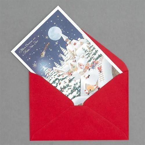 小さいサンタたちが美しい風景を旅するミニサンタシリーズ。絵本のようなストーリー性を感じられる世界観が長年愛されています。二つ折りのカードの中面にはクリスマスのメッセージが書かれているので、このまま渡しても大丈夫です。 また、ご自身でメッセージを記入するスペースもございます。
