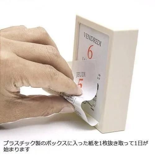 プラスチック製のボックスに入った紙を1枚抜き取って1日が始まります。