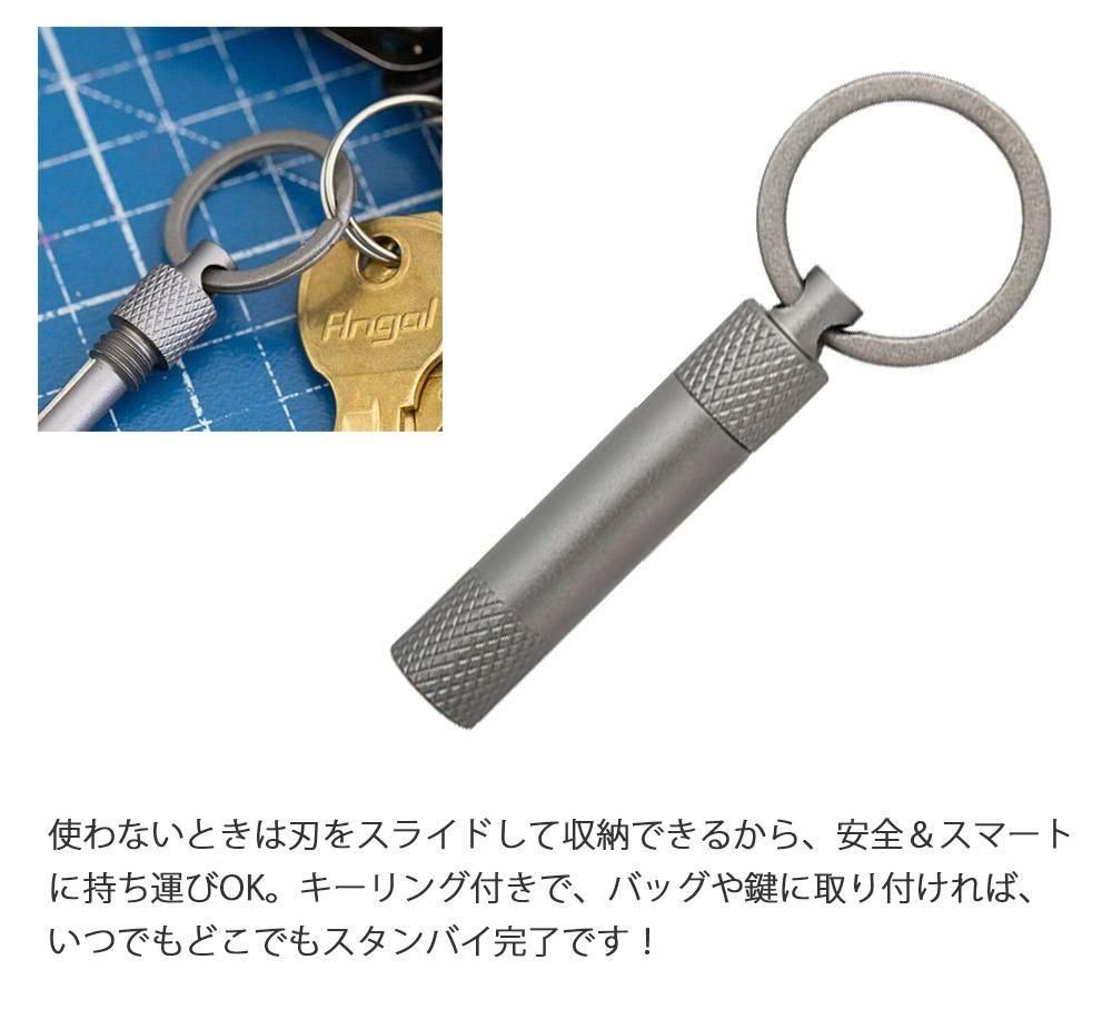 軽量なアルミ合金ボディに、シャープな切れ味のセラミック刃を搭載。使わないときは刃をスライドして収納できるから、安全&スマートに持ち運びOK。キーリング付きで、バッグや鍵に取り付ければ、いつでもどこでもスタンバイ完了です!